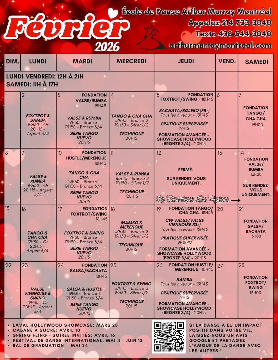 Vous cherchez des cours de danse de salon près de Saint Laurent? Ne cherchez plus! Situé à proximité du magnifique Saint Laurent, QC, non loin du Majestique Montréal et du Resto-Café Amaraya, nous offrons des cours de danse pour toute la grande région de Montreal.